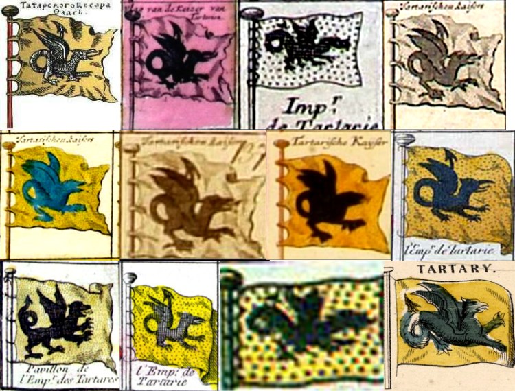 “An interesting old description of this khan’s emblem is placed in the essay by Carlus Alard (published in 1705 in Amsterdam, translated in Russian in 1709): “The flag of the tsar from Tatarstan, yellow with black lying and facing the dragon (the great serpent) with a basilisk tail. ” Indication that the sign or emblem of the Tatar khans is a dragon, or a winged serpent, can be found in Russian authors, but without repossession and colorful reproduction of the emblem.”