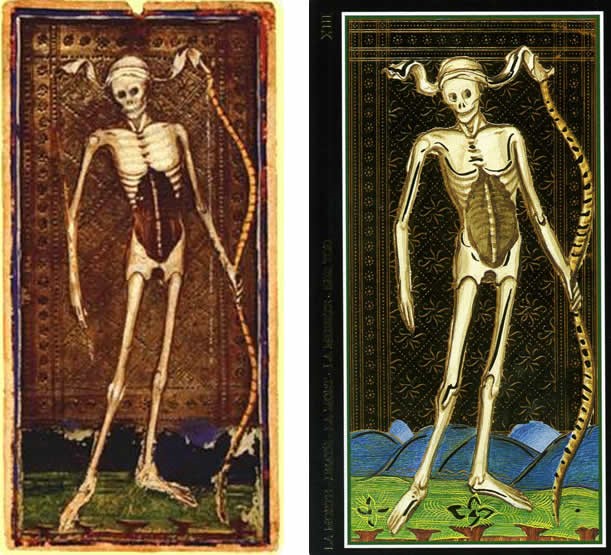 Therefore, we can assume that on the card “Death” in the form of a skeleton is symbolically depicting the planet Saturn or the zodiac sign of Scorpio. If the human skeleton symbolically depicts the constellation Scorpio, then for the planet there is no symbolism on this map.