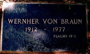 Again he quotes Wernher Von Braun’s Gravestone. Psalms 19:1