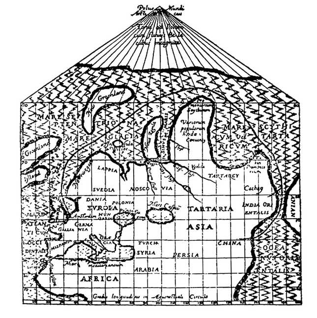 It can be seen how it is still primitive. Africa is one continent with Asia. The Scandinavian Peninsula merged with Europe. More or less well depicted only the Mediterranean. Apparently, after the split of the Great = “Mongol” Empire at the beginning of the 17th century, much geographic information was forgotten and the Europeans had to re-restore the geographical maps.