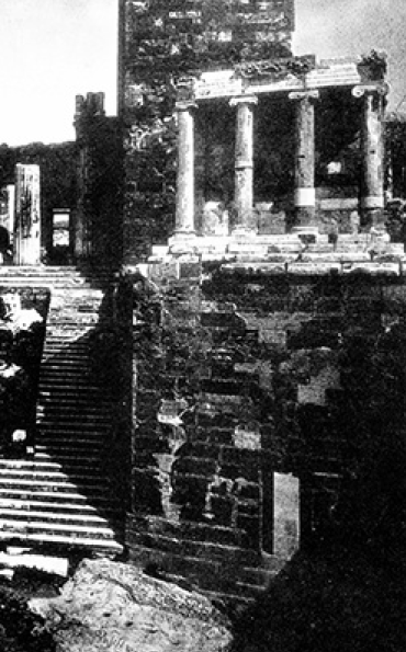 1860’s photo again showing an Ottoman Tower next to the Athena Temple. Notice the brickwork. Identical?