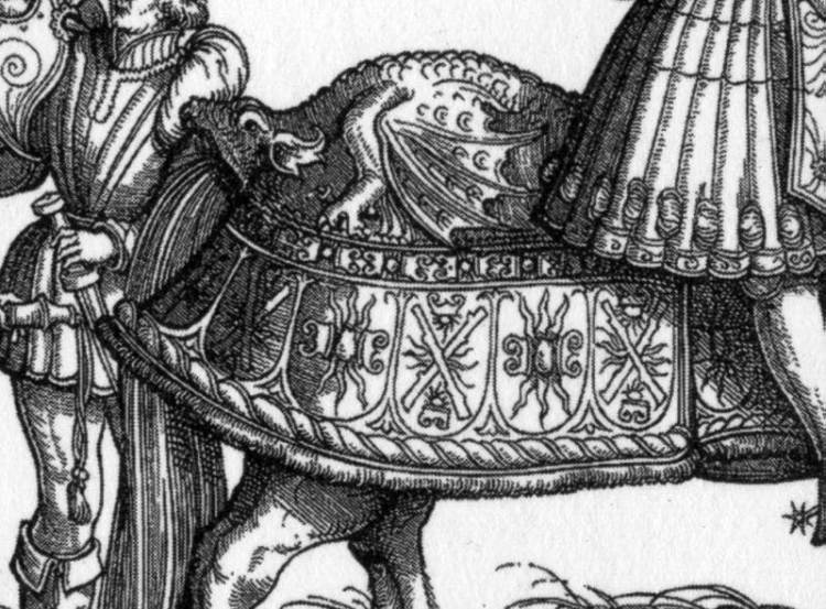 …shows an unusual symbol which can be seen in ‘The Triumphal Arch of Maximilian I’ by Durer [PE]. The oblique Andreevsky cross surrounded by the four symbols of the stopped sun. The sun while moving across the skies stumbles against the czar’s crown and comes to a standstill. We see that the discovery of the heliocentric model was depicted on the coat of arms of the Horde Empire. On ‘The Triumphal Arc’ there is also the image of the stopped sun, boxed in between the two czar’s royal crowns. Such images are also present in both ‘The Triumphal Procession’, pic.66, and in a A.Durer’s gravure ‘Large Triumphal Carriage’