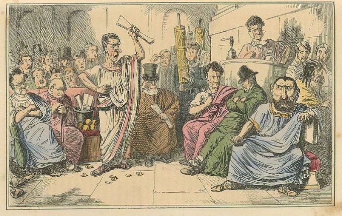 “Publius Clodius, out from his saffron dress, from his headdress, from his Cinderella slippers and his purple ribbons, from his breast band, from his dereliction, from his lust, is suddenly rendered a democrat.”