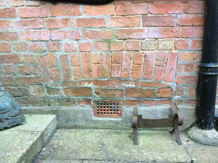 About 12 feet further on is exactly the same bricked up window thingy. Behind and underneath is a small cellar.