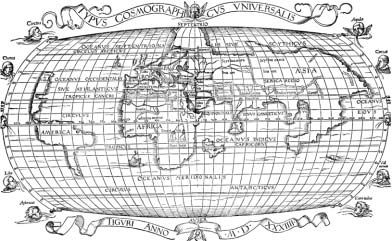 2) Map of the world by Joachim von Watt, allegedly of 1534. The date is written as {.M.D.XXXIIII.}, that is with separating dots, q.v. in fig. 6.63 and fig. 6.64.