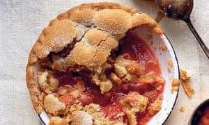 - Cream the butter and caster sugar in a food mixer till light and fluffy. Mix in the lightly beaten egg, then gently add the flour and baking powder. Remove dough from the mixing bowl and roll into a ball on a heavily floured work surface. Knead the dough for a minute or two until smooth and soft. Wrap in greaseproof or waxed paper and refrigerate for about 20 minutes. Set the oven at 180C/gas mark 4. Cut the ripe plums or greengages in half and remove their stones. Cut the fruit into large pieces, toss with the caster sugar and cinnamon and put into a lightly buttered 20-22cm baking dish. Roll out the pastry on a floured board, then lift carefully on to the pie. There will be a little left over. The crust is very short and it really doesn’t matter if it tears as you lower it over the fruit. Some of the juice will probably erupt through it as it cooks anyway. At least I hope so. Brush the pastry lightly with milk and bake for 40 minutes. The pastry should be pale-biscuit coloured. Dust with caster sugar and serve warm with cream.