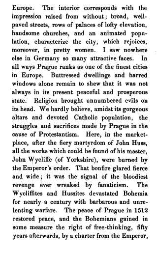 I’m still travelogue-ing in Prague in 1838. They are in the city now and talking about its past history.
