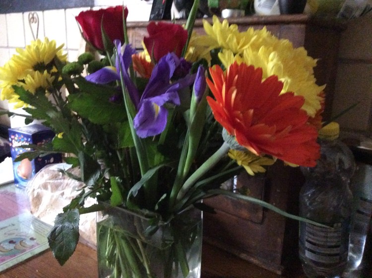 P.S. Said flowers are set up to hide the battlefield that is usually my nice kitchen. Sigh.