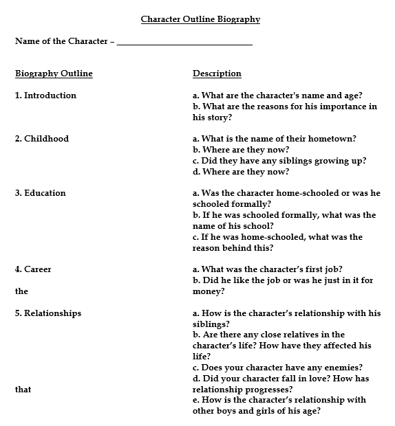 In the year or more – a good writer does intensive biographies for everyone and everything.