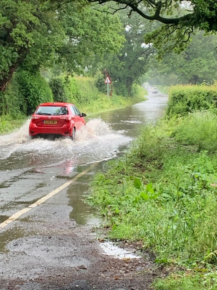 At 8am, I had to go out into town. The country lanes were all but flooded and a few branches were down.