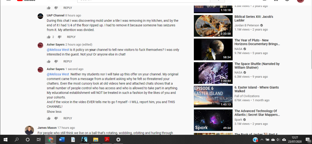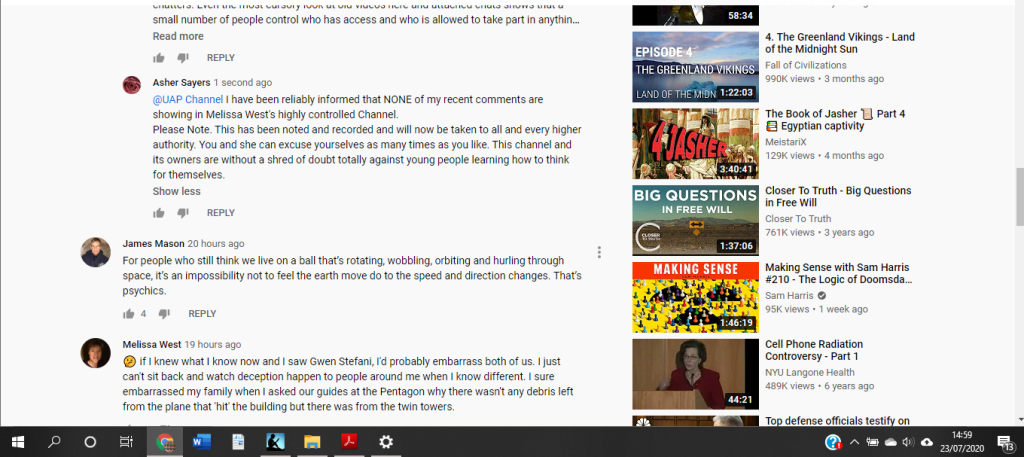 Yet another REAL person has been banned from a certain yt channel for DARING to say anything against the channel owner – MELISSA WEST