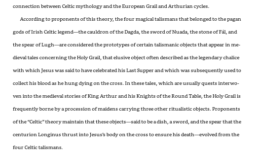 The author is brilliant but I disagree with him on the page in the image above. Evidence is growing that Celtic Myth/Arthurian Myth etc and the subject I’m studying ARE very deeply connected.