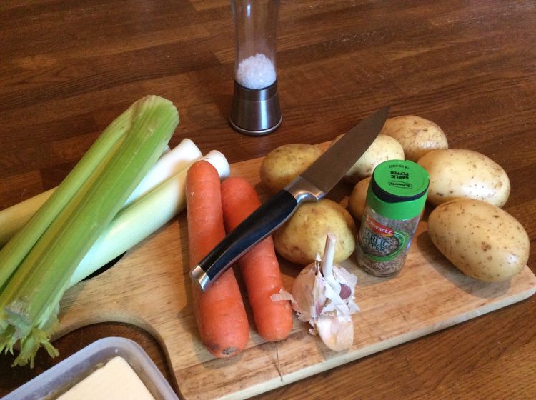 Anyway – tea tonight is a grab anything and everything already in the house concoction. I have leeks and potatoes and butter and milk and salt and garlic pepper. Aha! Soup.