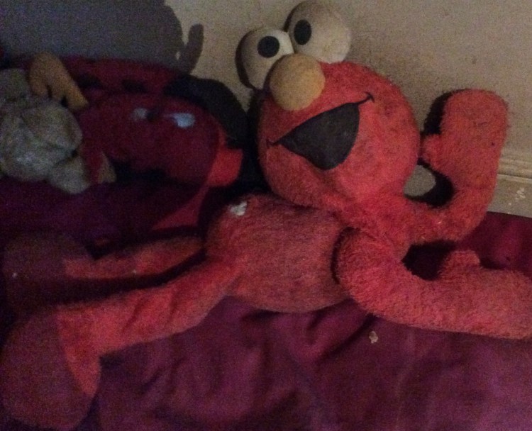 Elmo is still here. A bit battered and truly disgusting because I have to fight a madly possessive and paternal 7 stone German Shepherd every time I try and sneak the smelly teddy into the washing machine!!!