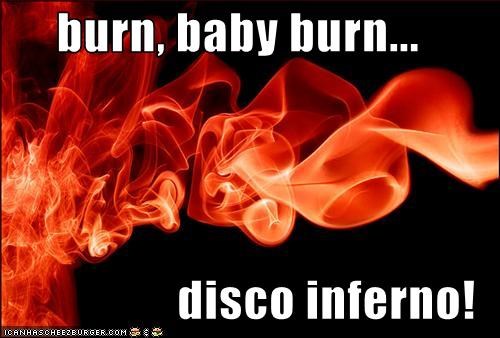 I WANT TO BREAK FREE. AhAhAhAhSTAYIN’ALIVEStayin’ ALIVE. BURNBABYBURN, DISCO INFERNO
