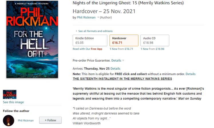 OK. So. It’s been a while since the last Merrily Watkins book so I thought I’d check on AmAzON.