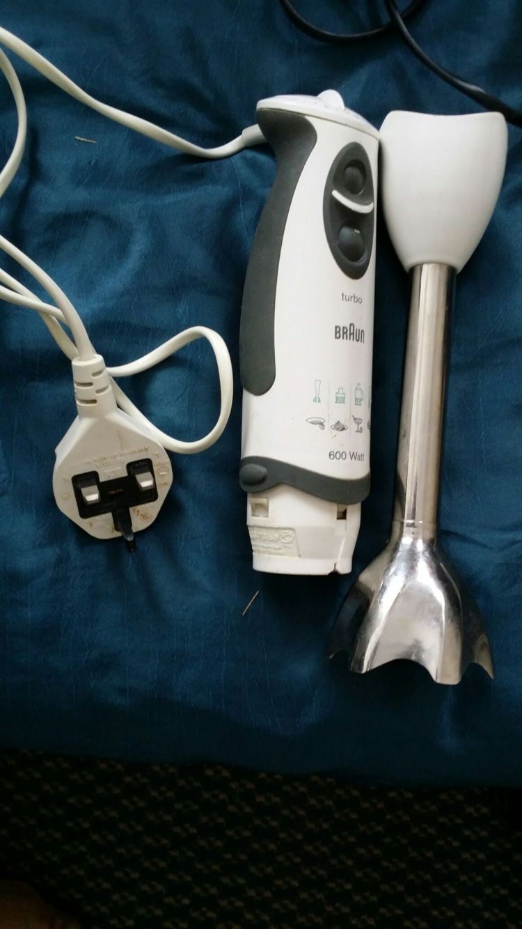Transfer the big cooking pot to the sink (it catches the splashes) and get your whizzy thing out. I just call it the whizzer. Image above.