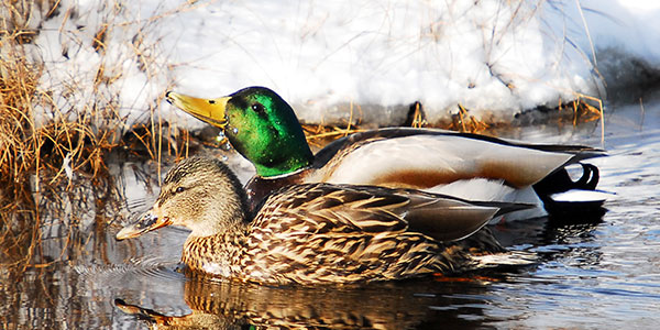 We have three wild Mallard Ducks that come back to us every year. Two males and a female. They waddle up to the kitchen window and shout at me. Daily.
