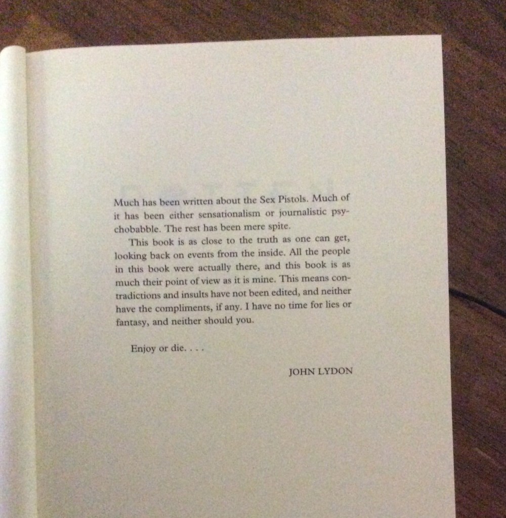 My beautiful son bought me John Lydon’s autobiography a few years back for my birthday.