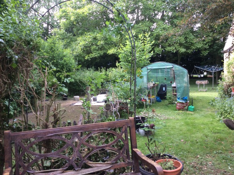 Yesterday I did the Privet Hedge Massacre, wove some ivy around the stumps, moved (and repaired) the metal arch, moved the very heavy bench, moved and replanted two climbing roses and a honeysuckle…all on my own.