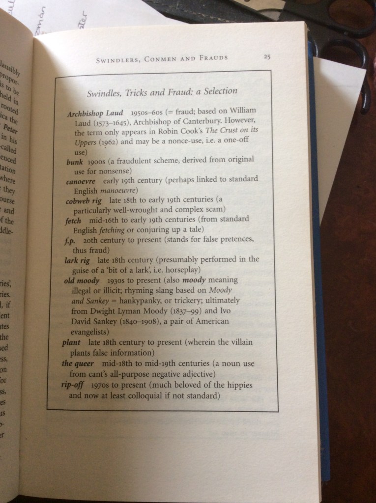 Arranged thematically, the book shows where particular words came from, how they have evolved and why they mean what they do. If you have ever wondered when the police were first referred to as pigs (the eighteenth century), why prison guards became known as redraws (‘warder’ backwards), or what precisely the subtle art of dipology involves (pickpocketing), then this book has all the answers.