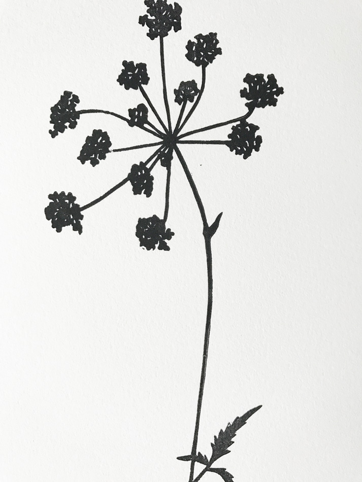 The one I saw had been RUST dyed and then lino-printed with few black cow parsleys.