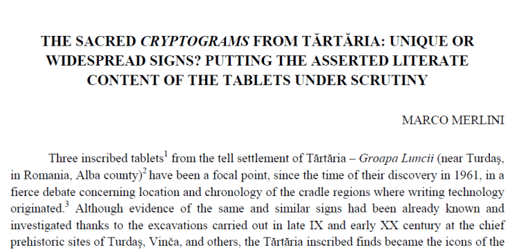 Page 4, paragraph 1….the movie begins after all the bs credits. This is gonna be a long haul. UNIQUE OR WIDESPREAD SIGNS? Cryptogram. Tartaria. Scrutiny. Location. Chronology. Roumania. ALBA(!) WHERE WRITING TECHNOLOGY ORIGINATED. Late 19th/early 20th cc. OMG!