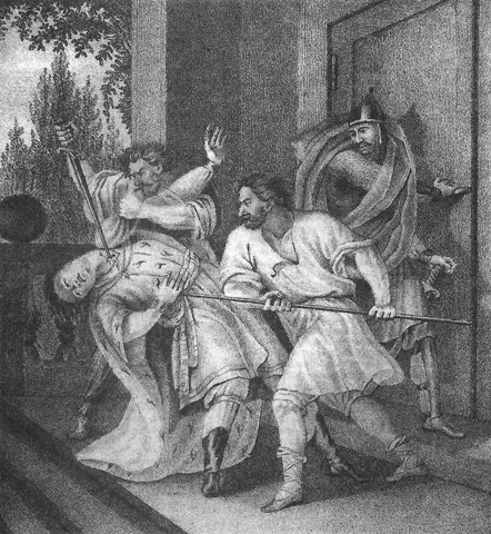 The Murder of Yaropolk – Yaropolk trusted Blud and his brother’s promises of peace and left for Vladimir’s headquarters, where he would be killed in an ambush by two Varangians. Wiki : Yaropolk I of Kiev
