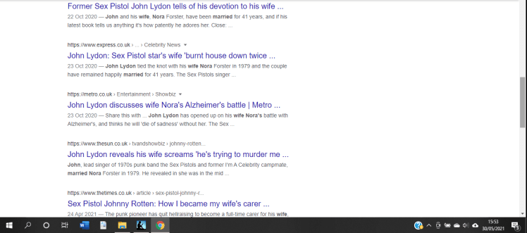 OMG : That’s such a Brit word. My Babby. My beautiful son bought me John Lydon’s autobiography a few years back for my birthday. Johnny Rotten’s Foreword : He might be a Foul-Mouthed Irish Punk but he’s been married to his Babby for over 40 years. I knew Nora was ill. But didn’t realise that […]